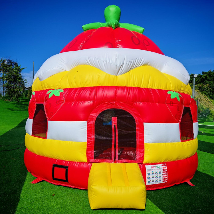 Shaped like a layered strawberry dessert — complete with whipped cream and a cherry on top — this adorable bounce house is always a hit. It’s bright, enclosed, and bursting with charm!