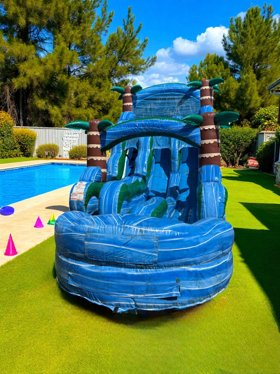 At a towering 18 feet tall, the Tropical Tides Slide brings tropical thrills to any event. With its wave-like design, dual climbing lanes, and splash pool option, this slide delivers excitement whether wet or dry!