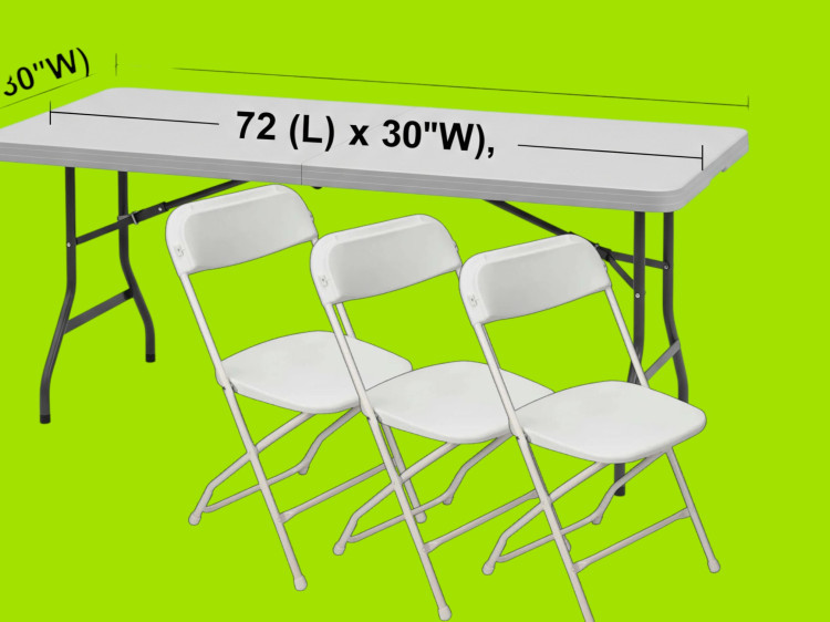 One 6‑ft table + 6 white folding chairs = quick, clean, ready‑to‑go party setup!